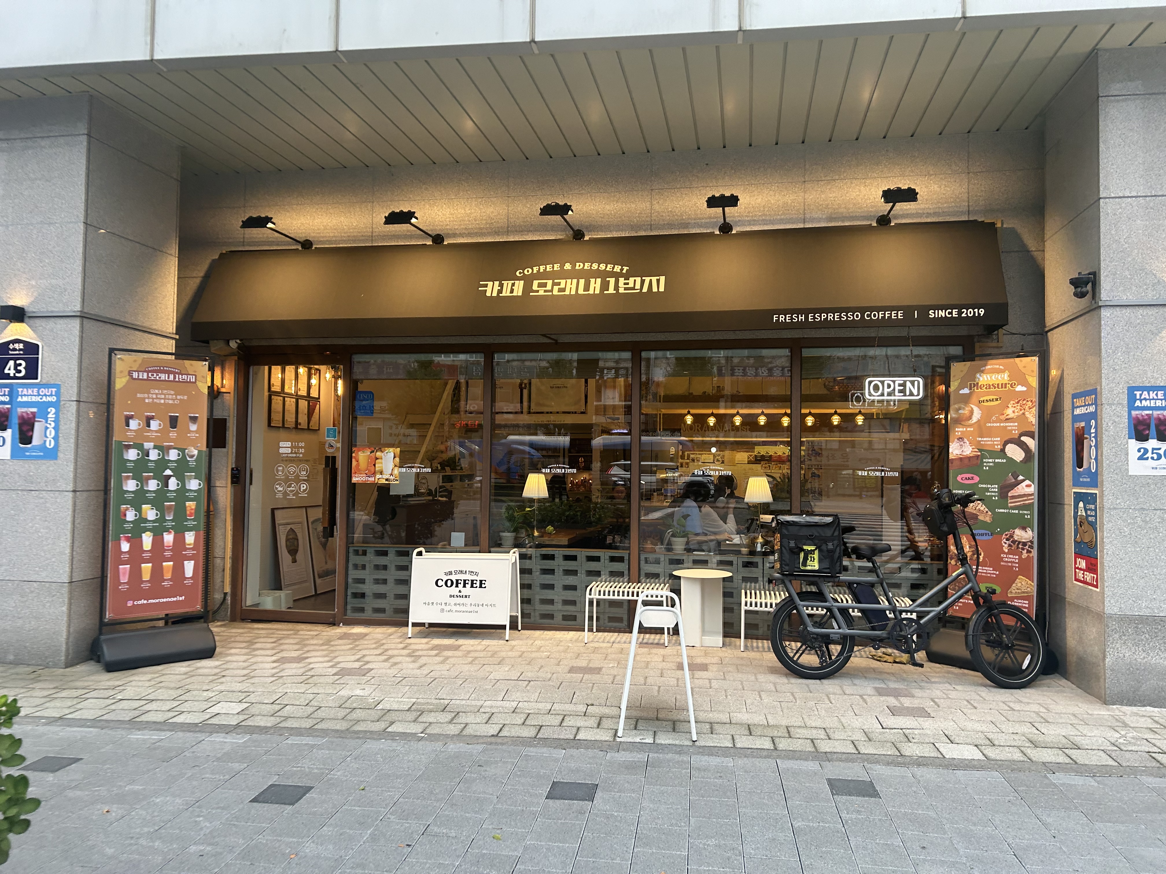 카페 모래내 1번지 메뉴판입니다.