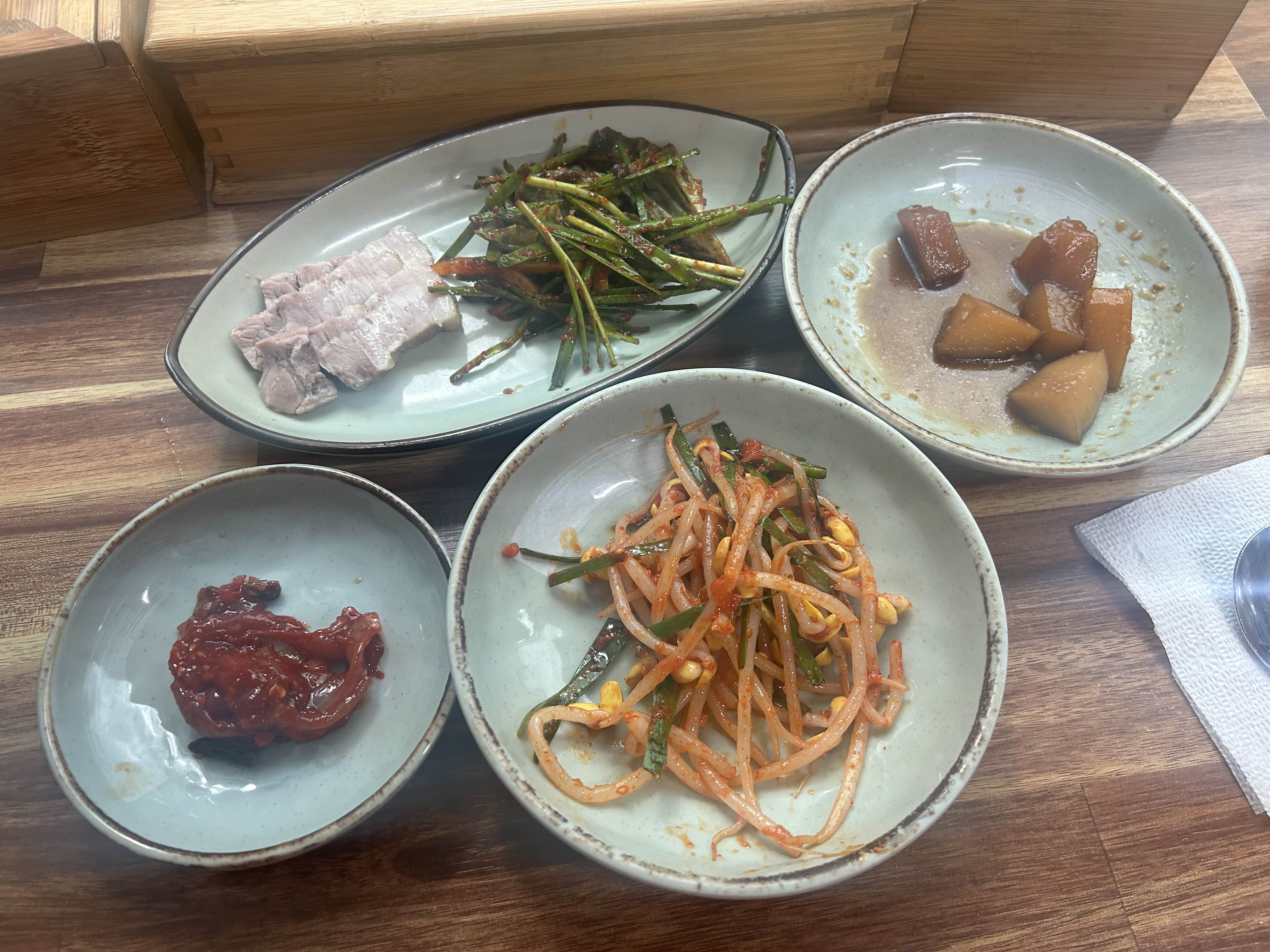 콩나물무침, 젓갈, 감자볶음