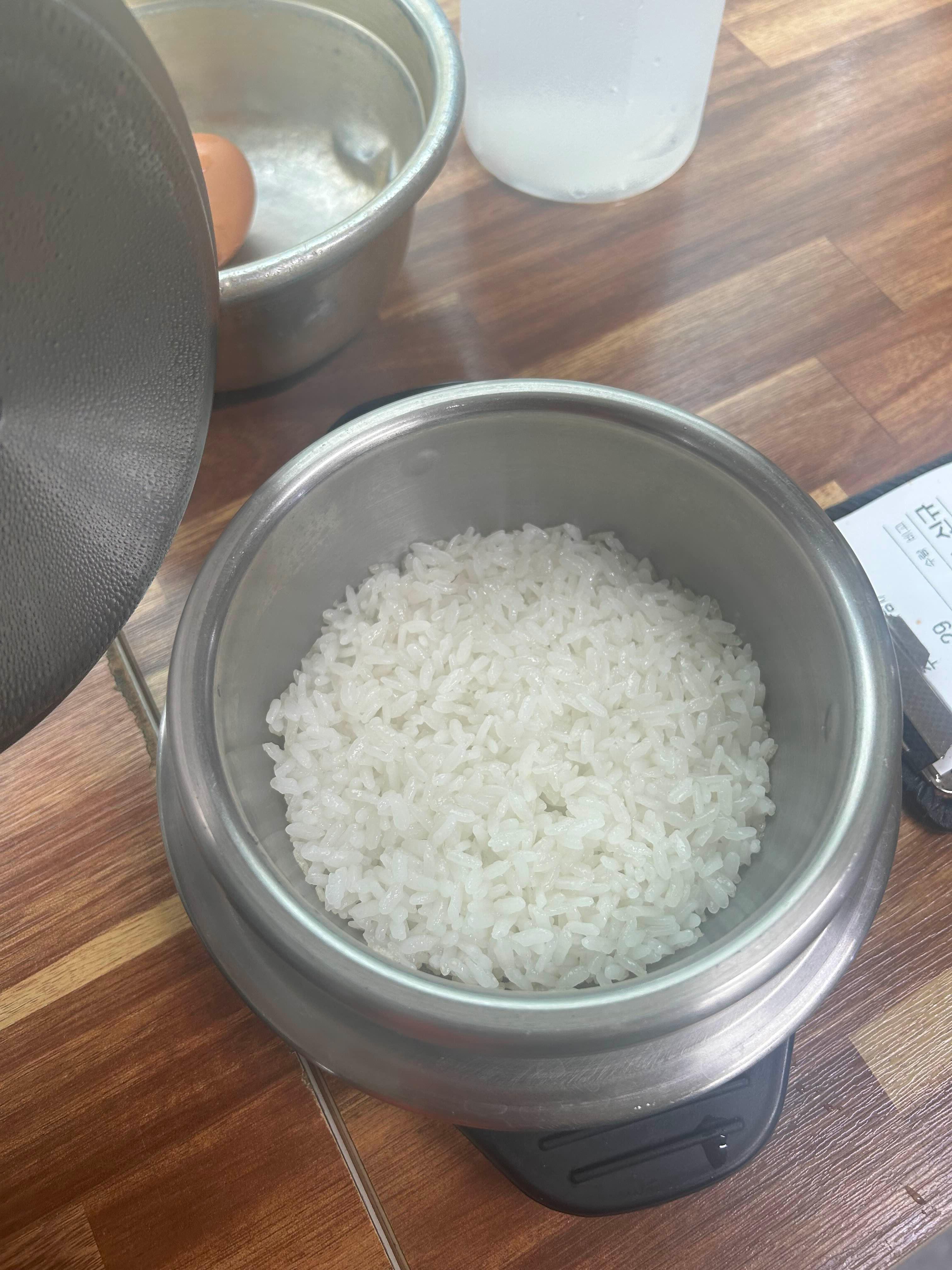 솥밥에 넣을 물, 그리고 날계란!