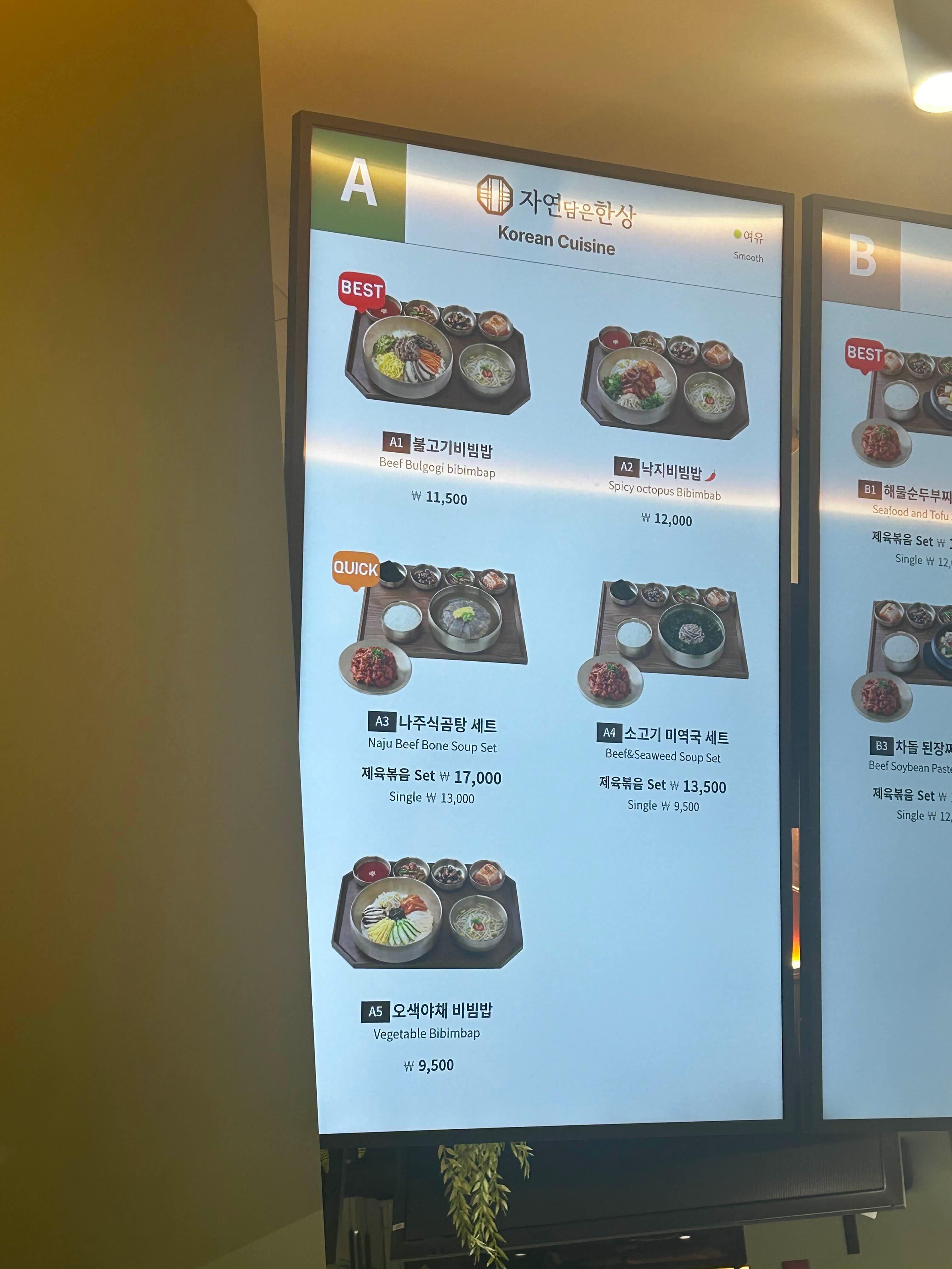 비빔밥, 국수, 분식, 햄버거, 돈까스 등