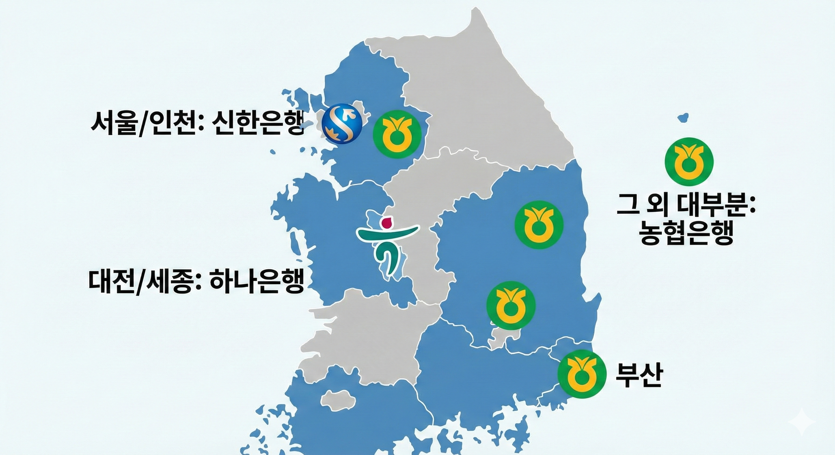 - 경기, 부산, 대구 등 그 외 대부분 지역: 농협은행 (NH스마트뱅킹 앱)